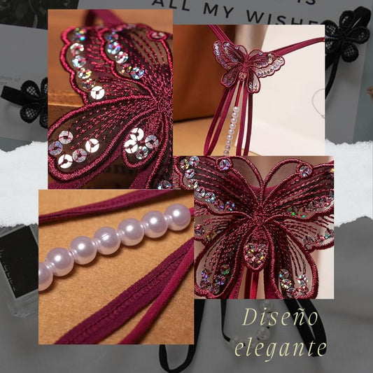 🦋 Mariposa de Encaje Perlado 🦋– Tanga Sensual Premium💎✨